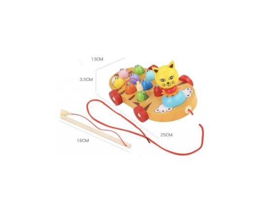 Jucarie de tras si pescuit Karemi din lemn – Pisica si pestisori