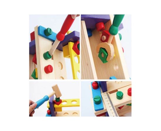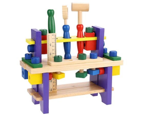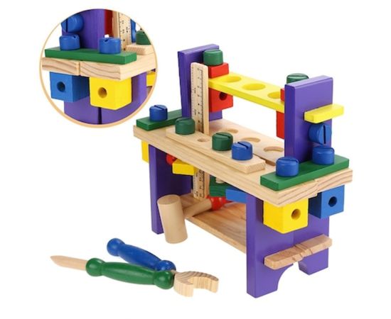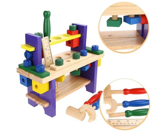 Jucarie Banc de Scule din Lemn format din unele si accesorii din lemn, lasa-l pe cel mic sa se distreze si sa invete cum sa le foloseasca.