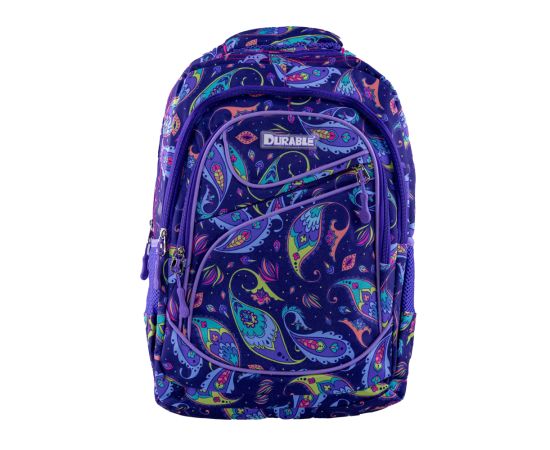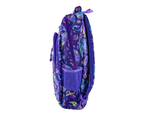 Ghiozdan Karemi pentru fete, 4 compartimente, 43x 32 cm, Purple flowers