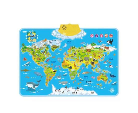 Harta interactive: Copiii pot invata in timp ce se joaca, vor invata atat despre animale de pe fiecare continent, cat si limba engleza.