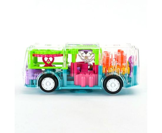 Autobuz pentru baieti Karemi, transparent, cu 3 baterii incluse, cu sunet si lumini, K01B-20017