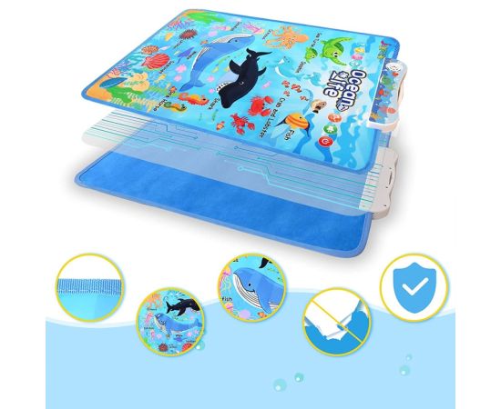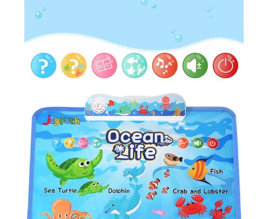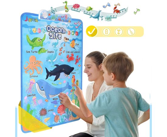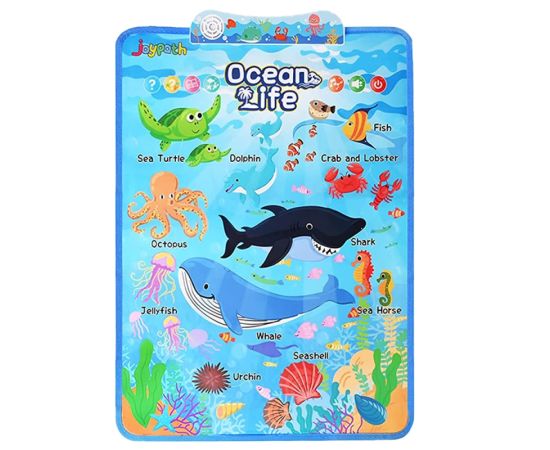 Afis interactiv de invatare a animalelor oceanice, pentru a ajuta copiii sa invete numele si caracteristicile a 11 creaturi marine. Designul atractiv colorat va atrage si va oferi ore de explorare si invatare distractiva pentru cel mic. Cel mai bun cadou pentru copilul tau.