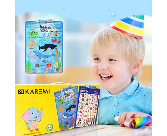 Jucarii interactive Karemi, jocuri educative audio in limba engleza, animalele din ocean, fara baterii incluse