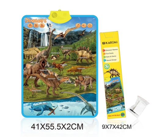 Jucarii interactive Karemi, jocuri educative audio in limba engleza, cu dinozauri, fara baterii incluse