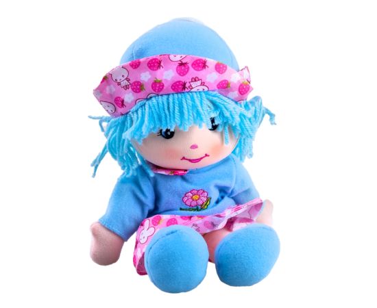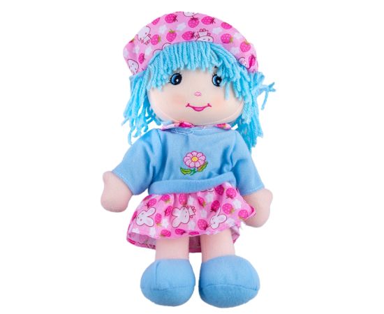 Papusa de plus Karemi, cu fusta si palarie, 26 cm, albastru