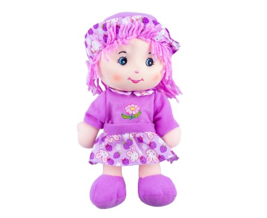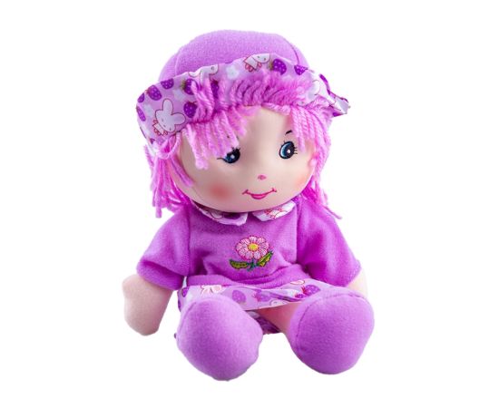 Papusa de plus Karemi, cu fusta si palarie, 26 cm, violet