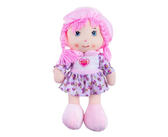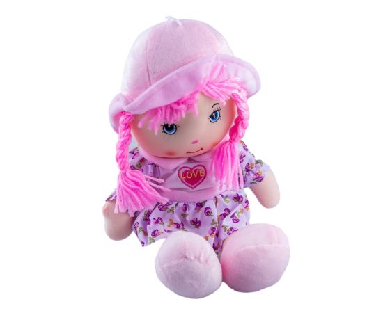 Papusa de plus Karemi, cu fusta si cosite, 35 cm, Mov/Roz