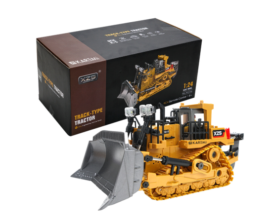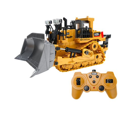 Excavator cu telecomanda realistic KAREMI, 1:24, cupa din aliaj, cablu USB, galben, 010