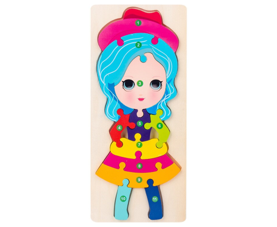 Puzzle educativ din lemn pentru copii Karemi, model papusa, 30 x 12.8 x 0.6 cm
