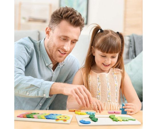 Metoda.Potriviti puzzle-ul in functie de modelul placii de lemn, usor de utilizat. Indepartati placa de jos pentru a reface puzzle-ul in functie de memorie. Lasati copiii sa concureze pentru a vedea cine poate completa toate puzzle-urile in cel mai scurt timp.