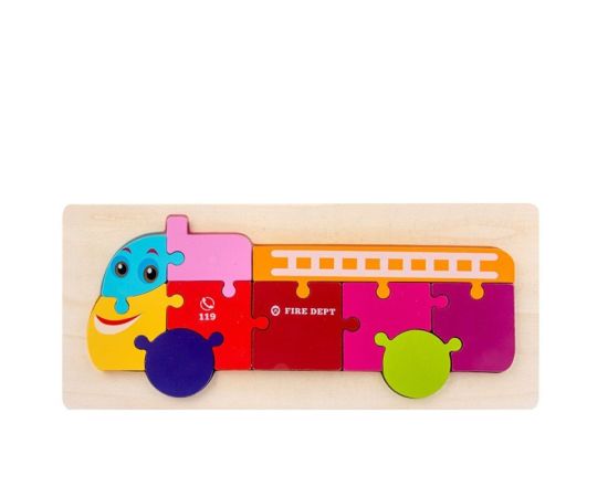 Puzzle educativ din lemn pentru copii Karemi, model masina de pompieri