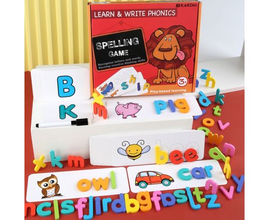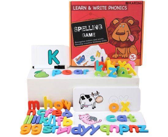 Puzzle Karemi, joc de ortografie, joc educativ cu exersarea literelor si cuvintelor, invatare limba engleza, K01B-10148