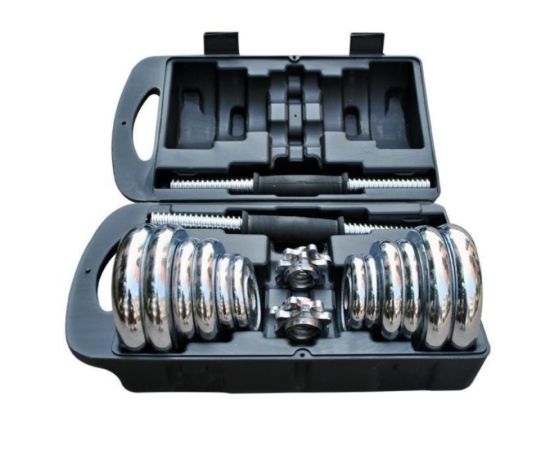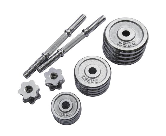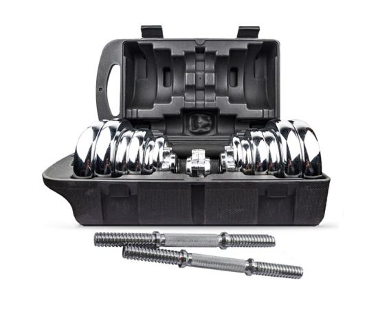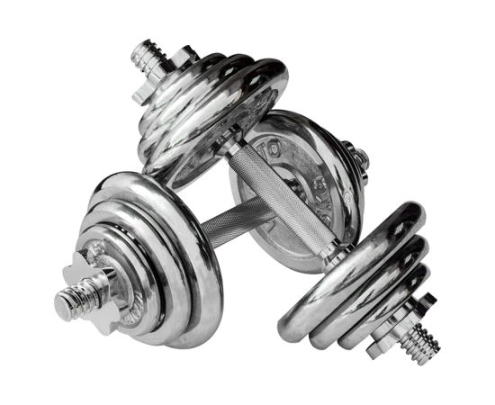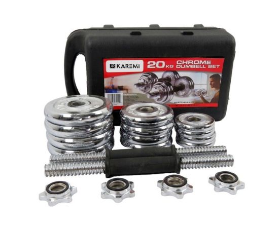 Set gantere si haltere, KAREMI, cu discuri din metal, cromate, 20 kg