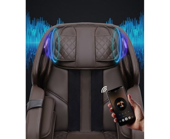 Fotoliu de masaj Hua, Lila Care, cu incalzire, functie bluetooth audio, zero gravity, piele ecologica, maro