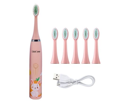Periuta de dinti electrica LilaCare, pentru copii, rezistent la apa, cu incarcare USB, 6 capete inlocuibile, 4 moduri de vibratii, roz