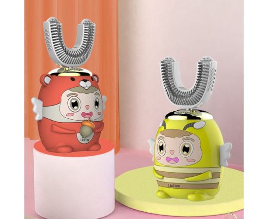 Periuta de dinti electrica pentru copii LilaCare, tip U, cu incarcare USB, cu 5 viteze,rosu.