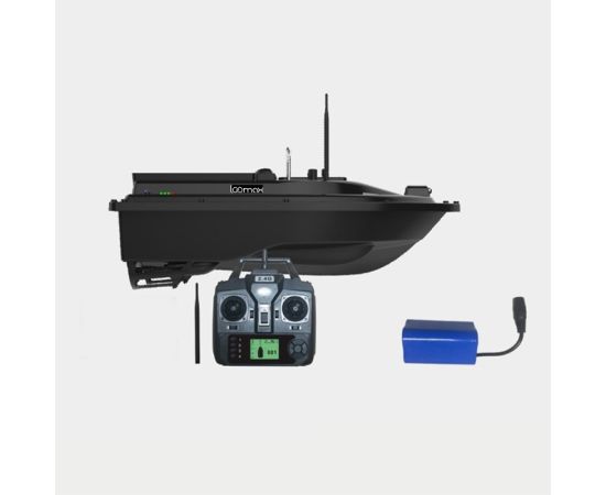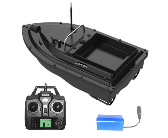 Barca pentru plantat momeala, cu telecomanda Loomax, 1 cuva, raza maxima 500 m, cu GPS, neagra, capacitate 2 Kg