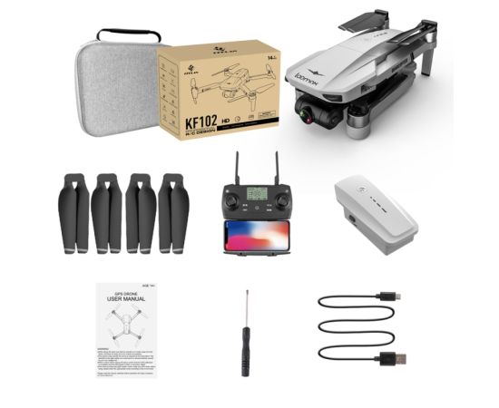 - Aceasta drona are multe alte functii inteligente si accepta un sistem de transmisie a imaginii 5G. In plus, motorul robust al quadcopterului KF102 il face rezistent la vant la nivelul 7, ceea ce face ca zborul extraordinar de constant sa-i permita sa functioneze lin.