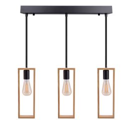 Lustra suspendata moderna din lemn natural, structura metalica negru mat Suspensie moderna pentru interior , cu structura din metal vopsit negru mat si lemn de fag natur.