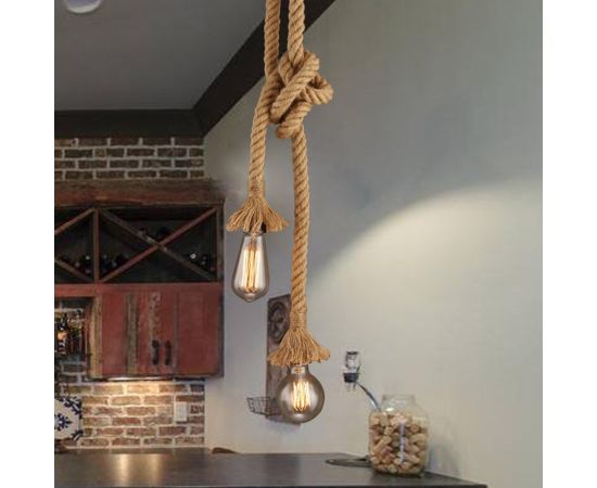Lustra suspendata vintage din sfoara, doua socluri, E27, max 40 W