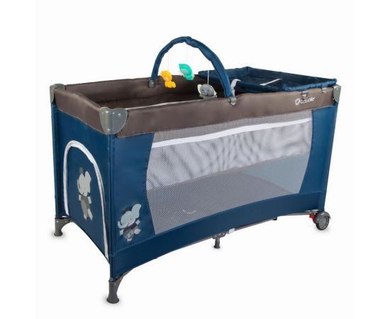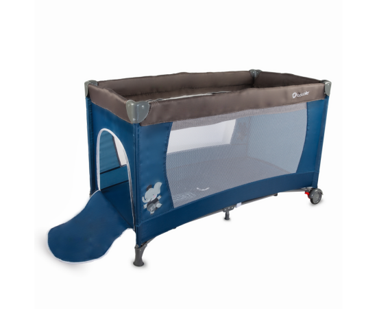 Partea laterala este prevazuta cu fermoar, oferind acces copilului in tarcul de joaca