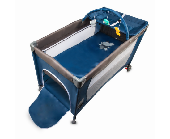 Patutul are incluse salteaua de dormit pliabila si geanta de transport