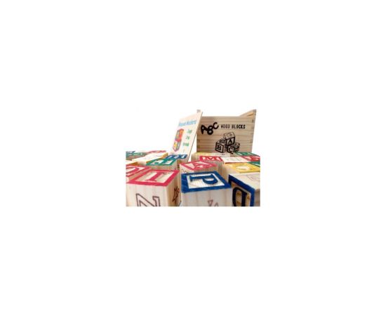 Piese din lemn Karemi "ISP ABC-123 Blocks" 48 Cuburi fara margini ascutite, Cifre, Litere, diverse Imagini, Multicolor, + Cub depozitare