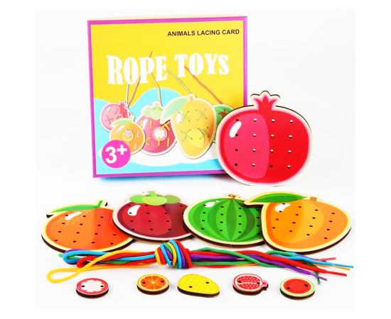 Puzzle educativ cu snururi Karemi, model fructe, multicolor
