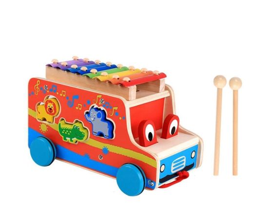 Puzzle Karemi camion cu ochi si xilofon, jucarie educativa din lemn, K01B-40011