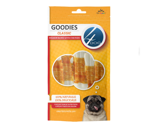 Recompense Caini 4DOG GOODIES Classic Medium Bone with Chicken 120g