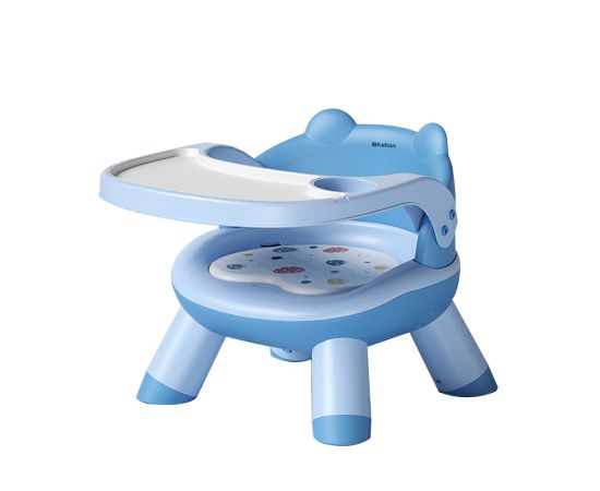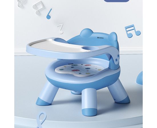Scaun de masa Karemi, pentru bebe, multifunctional, cu tavita, din PVC, albastru