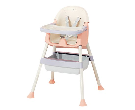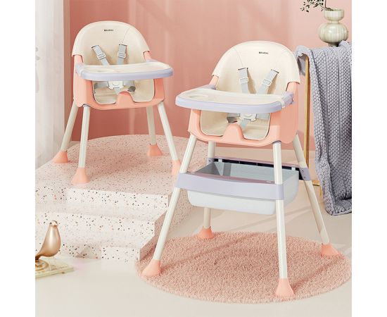 Scaun de masa Karemi, pentru bebe, multifunctional, cu tavita si compartiment depozitare, roz