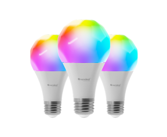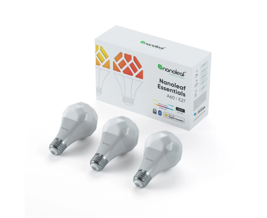 Set becuri smart Nanoleaf Essentials Smart, Bluetooth, LED, RGBW, E27, 9W, 806 lm, lumina alba si colorata, 3 bucati