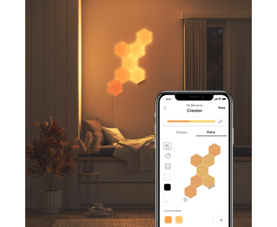Creati o experienta de iluminare cu adevarat personalizata. Exploreaza-ti propriile modele de iluminare unice aranjand panourile modulare in orice configuratie pe care o doresti pentru o libertate creativa completa. Nanoleaf Elements ofera o iluminare cu adevarat personalizata, fara a sacrifica eleganta sau stilul. Cea mai buna parte este ca puteti reproiecta cu usurinta o alta configuratie in orice moment!
