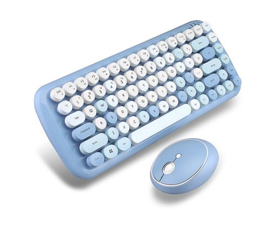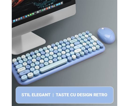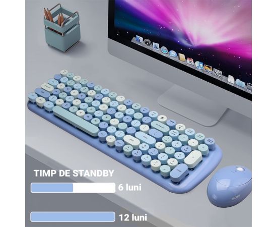 Set tastatura si mouse Mofii, Wireless, 2.4G, USB, Albastru