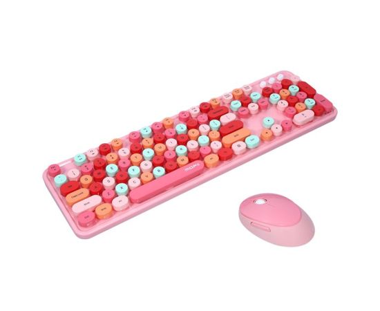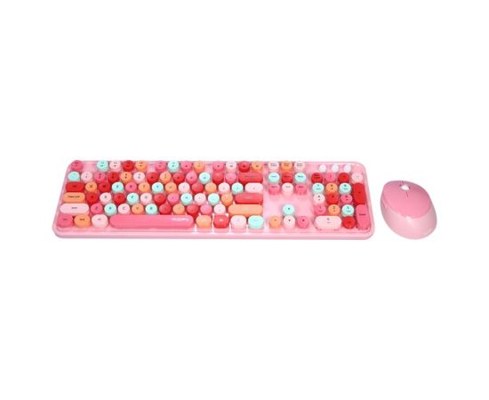 Set tastatura cu 104 taste si mouse Mofii, Wireless, 2.4G, USB, roz