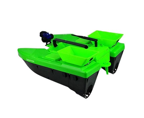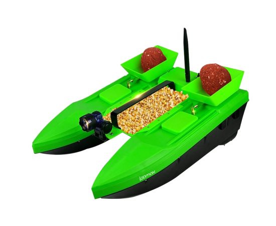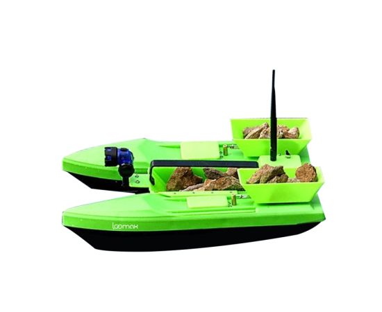 Barca pentru plantat momeala, Loomax, verde, cu geanta si 2 baterii, 3 cuve, capacitate 2 kg, raza maxima 500 m