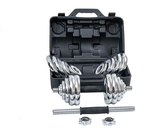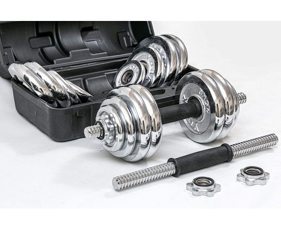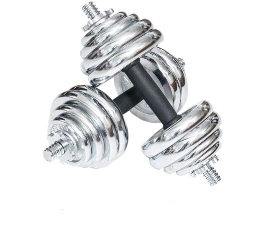 Set gantere si haltere, KAREMI, cu discuri din metal, cromate, 30 kg