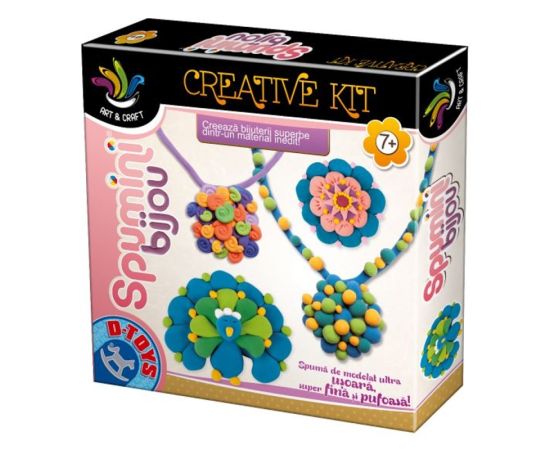 Creeaza bijuterii deosebite dintr-un material inedit! Margelele, florile si componentele obtinute din spuma se lipesc intre ele printr-o singura atingere, astfel poti realiza modele complexe. Setul include aprox. 2 metri de fir elastic transparent si suficienta spuma de modelat pentru a realiza cel putin un colier, o bratara si un inel sau mai multe variante ale acestora.