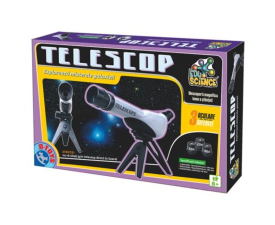 contine telescopul, trepied si 3 oculare cu marire de 20x, 30x, 40x