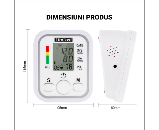 - Rata de masurare presiune: 40 mmHg-280 mmHg; plus: 40-199/ minute