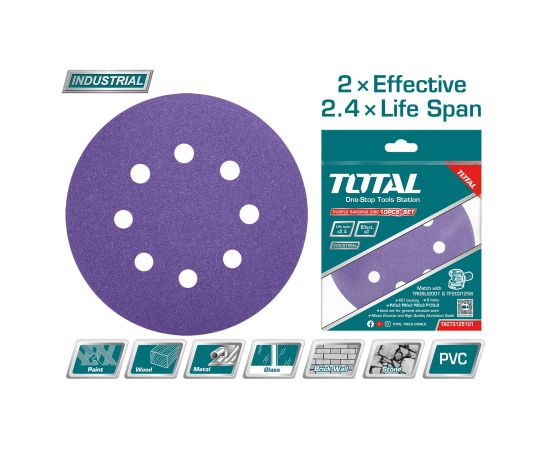TOTAL - DISC HARTIE ABRAZIVA 125MM - P40,P60,P80,P120