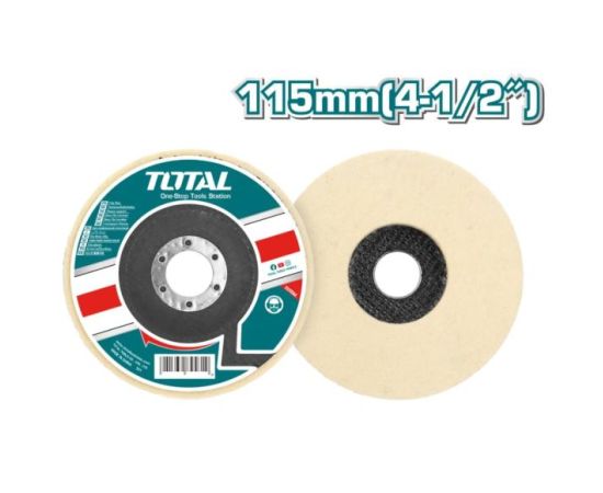 Discul de pasla Total, cu dimensiunea de 115mm si diametrul de prindere de 22.22mm, este perfect pentru slefuirea si lustruirea diverselor suprafete, oferind un finisaj neted si uniform. Este ideal pentru utilizarea cu polizoare unghiulare.