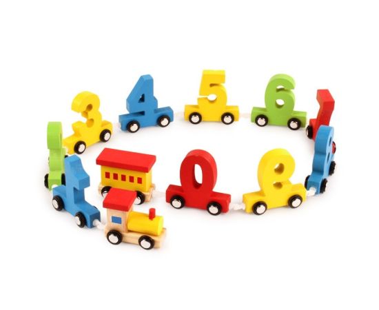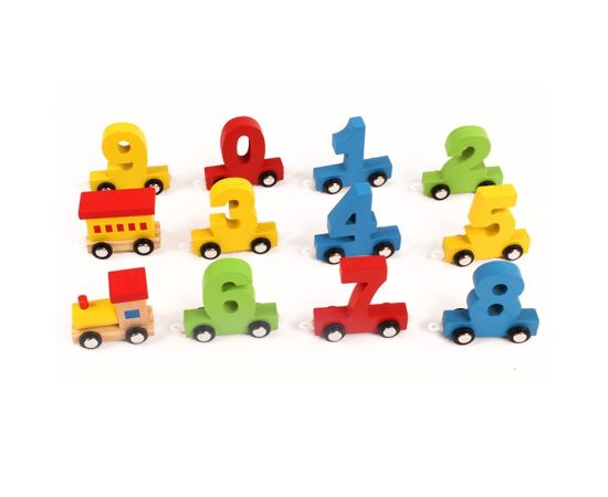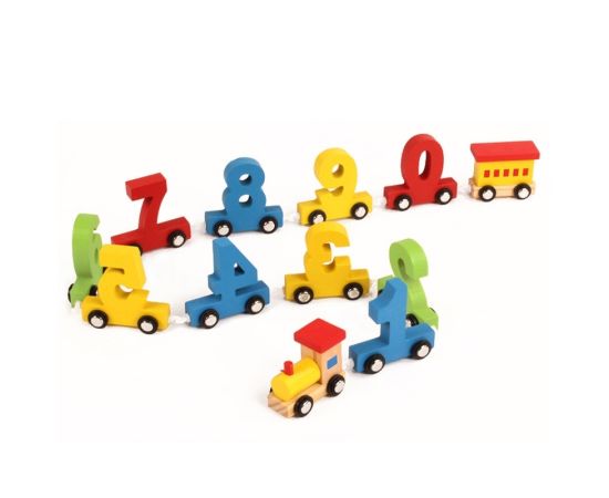 Tren din lemn cu vagoane cifre de la 0 la 9 Karemi, multicolora