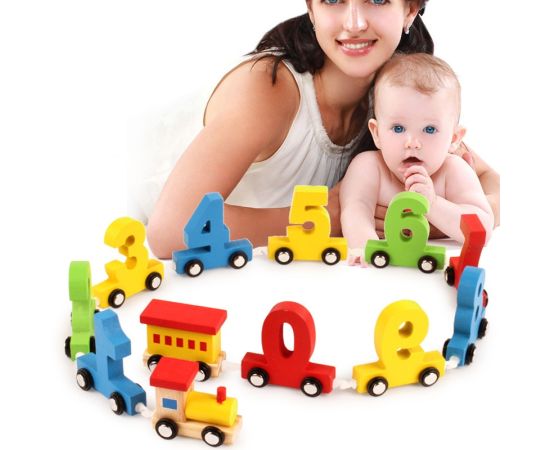 Trenuletul Cunoasterii Cifrelor Din Lemn este o jucarie Montessori educativ si distractiva, fiecare cifra putand fi detasata de locomotiva sau de vagonul din spate sau din fata, distractia si cunoasterea fiind mana in mana.