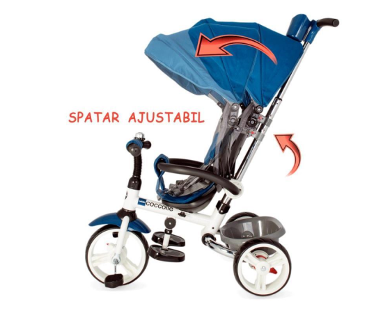 Sezut ajustabil in doua pozitii iar Spatarul tricicletei dispune de doua pozitii de inclinare
