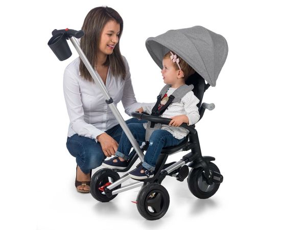 Plimbarile nu au fost niciodata atat de confortabile ca in Qplay Nova multumita spatarului ajustabil si a functiei de utilizare atat cu spatele, cat si cu fata la sensul de mers. Pentru comoditate maxima, tricicleta este echipata cu suport de picioare pentru bebelusi foarte util atunci cand micutul nu ajunge la pedale. Pe masura ce creste, acest suport se poate indeparta, iar copilasul poate folosi suportul de picioare pliabil. Mai mult, manerul auxiliar telescopic se ajusteaza corespunzator inaltimii parintelui astfel incat impingerea tricicletei poate deveni o placere si pentru cei mari.