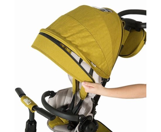 Copertina XXL a tricicletei este reglabila pentru a gasi unghiul optim de protectie impotriva razelor solare; dotata cu 2 vizoare si parasol, copertina tricicletei Alto confera un nivel maximal de protectie si confort. Precum celelalte elemente ale tricicletei, si copertina este detasabila.